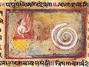Secondo il tantra in ogni essere umano, sia esso uomo o donna, esiste un principio maschile e uno femminile. Il principio maschile è individuato nella testa e viene chiamato bindu. Il principio femminile è posto alla base della colonna vertebrale ed è rappresentato dal trikona, cioè il simbolo dell'organo genitale femminile. In questo punto, riposa addormentata kundalini, avvolta su se stessa per tre spire a mezzo.